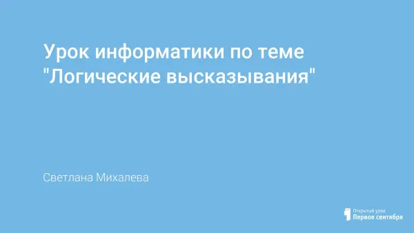Данный урок является вторым уроком из раздела "Логический язык" и проводится в 10-м профильном классе. Материал урока позволяет расширить представления обучающихся об алгебре высказываний, познакомить с логическими операциями и таблицами истинности; развивать умения учащихся оперировать понятиями и символикой математической логики, а также продолжает формировать логическое мышление.