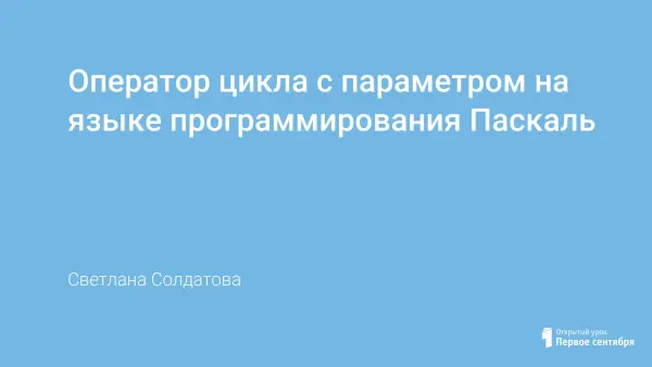 Статья представляет собой методическую разработку урока продолжительностью 90 минут, целью которого является формирование представления об операторе цикла с параметром. С целью обобщения материала проводится тест с последующей взаимопроверкой.