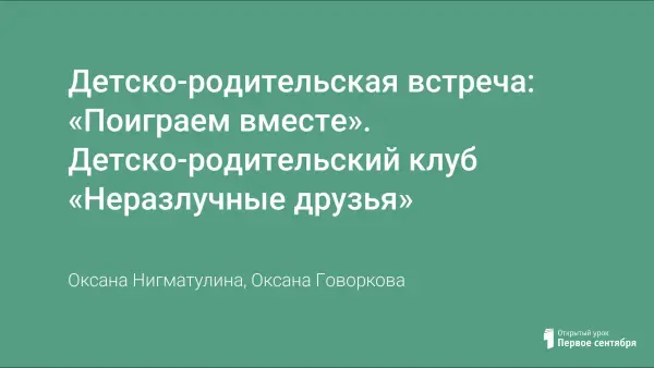Детско-родительская встреча: «Поиграем вместе». Детско-родительский клуб «Неразлучные друзья»