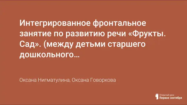 Интегрированное фронтальное занятие по развитию речи «Фрукты. Сад». (между детьми старшего дошкольного возраста групп комбинированной (дети нормотипичные, ТНР) и компенсирующей (дети с ЗПР) направленности)