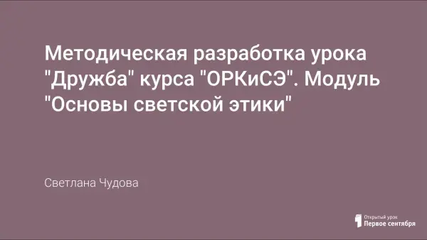 Методическая разработка урока "Дружба" курса "ОРКиСЭ". Модуль "Основы светской этики"