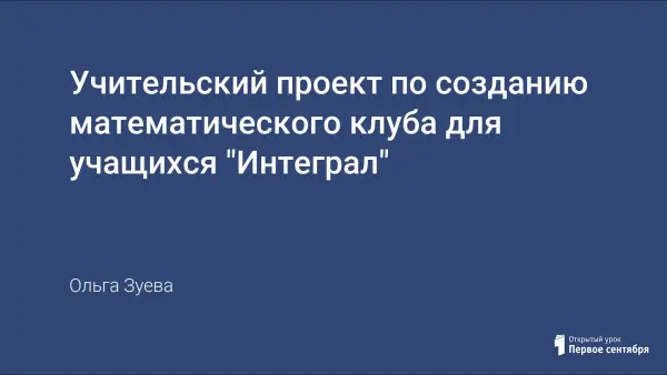Среди существующих форм внеурочной деятельности, направленных на развитие интеллектуальных возможностей учащихся, нужна была модель, которая предусматривает организацию поисковой деятельности учащихся путём постановки познавательных и творческих задач, требующих самостоятельного решения и объединяет учащихся всей школы. Создание математического клуба «Интеграл» и стало нашим проектом, который позволил реализовать концепцию математического образования в нашей школе.