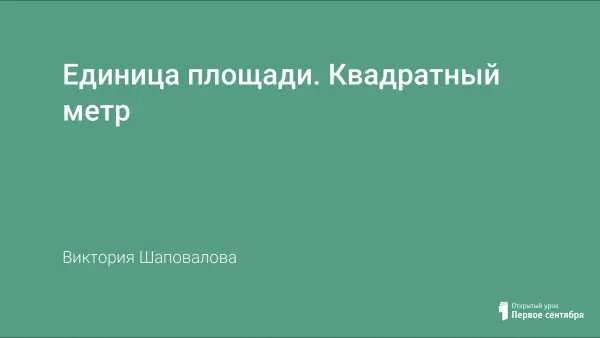 Цели урока: учащиеся познакомятся с новой единицей площади – квадратным метром, его условным обозначением; научатся записывать единицы площади, решать геометрические задачи, задачи на кратное сравнение, соблюдать порядок выполнения действий в числовых выражениях.