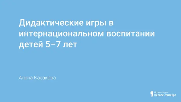 Динамика жизни и социально-политические события в стране резко изменили национальный состав социального пространства, обострив межнациональные взаимоотношения между людьми и тем самым поставив ребенка в поле социально-психологического напряжения. Под интернациональным воспитанием детей 5–7 лет, мы подразумеваем прежде всего формирование у них дружеского отношения к представителям всех национальностей. Одним из средств этого формирования является дидактическая игра.