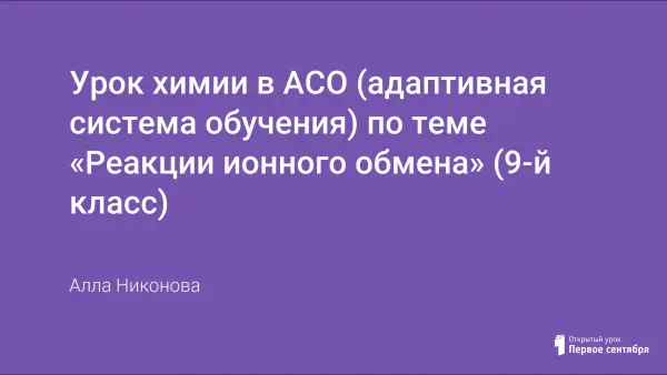 Урок химии в АСО (адаптивная система обучения) по теме «Реакции ионного обмена» (9-й класс)