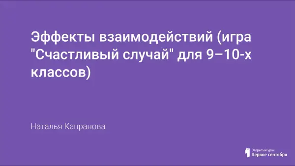 Урок проводится в форме игры «Счастливый случай» для 9–10-х классов в конце года или во время проведения предметных недель. В игре используется материал из разделов: законы взаимодействия и движения тел; механические колебания и волны; строение вещества; давление твердых тел, жидкостей и газов; электрические явления; световые явления.