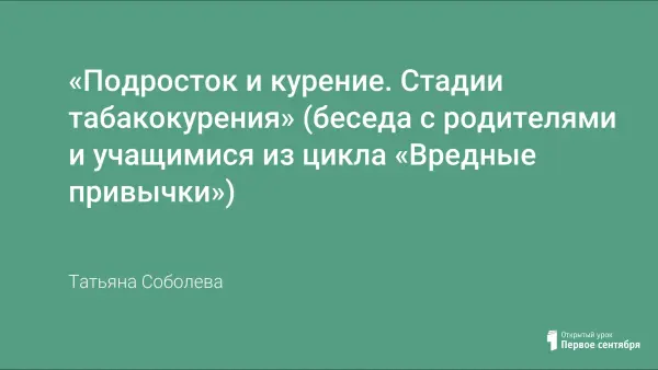 На уроке проводится беседа о вреде табакокурения для подрастающего организма. В нашей стране принят закон «О запрещении курения в общественных местах». Меры по борьбе с курением среди подростков могут оказаться достаточно эффективными лишь в том случае, если они будут настойчиво дополнять систему противоникотинового воспитания в школе и дома.