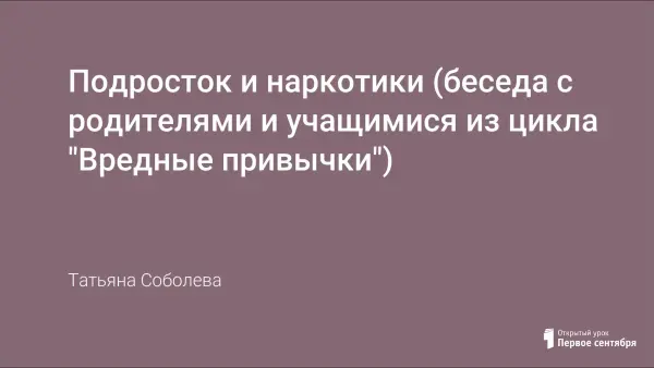 Статья представляет собой материал для беседы с родителями и учащимися из цикла «Вредные привычки», посвященной проблеме наркомании как одной из самых коварных болезней нашего времени.