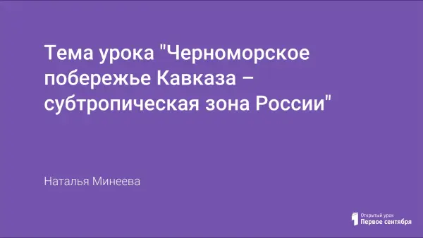 В ходе урока у детей формируется представление о зоне субтропиков, ее географическом положении, климатических условиях, растительном и животном мире, деятельности человека.