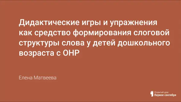 В статье показана значимость дидактических игр в процессе формирования слоговой структуры слова у детей с общим недоразвитием речи. Материал может использоваться воспитателями дошкольных учреждений.
