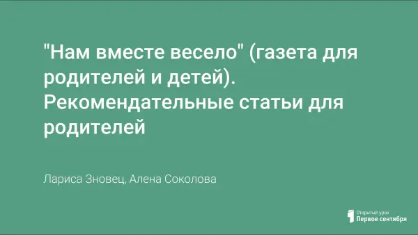 "Нам вместе весело" (газета для родителей и детей). Рекомендательные статьи для родителей