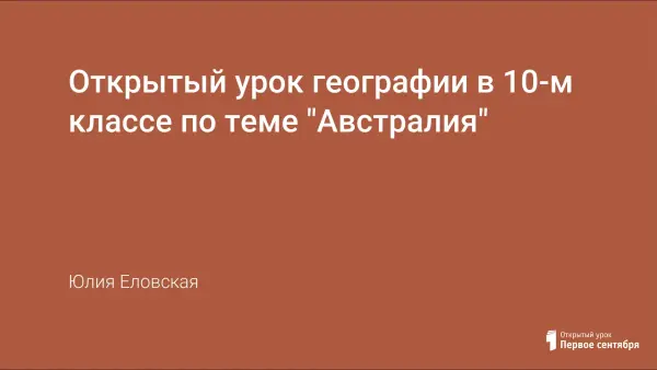 Цель урока: создать образ Австралии с присущими ему чертами и экономико-географическими особенностями. При характеристике хозяйства Австралии делался акцент на отраслях специализации, крупнейших промышленных центрах и районах.