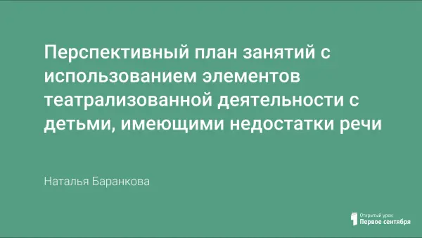 В статье дано планирование занятий с использованием элементов театральной деятельности для коррекции речи детей.