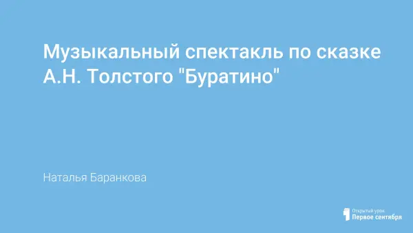 Сценарий музыкального спектакля по мотивам сказки А.Н. Толстого «Буратино».