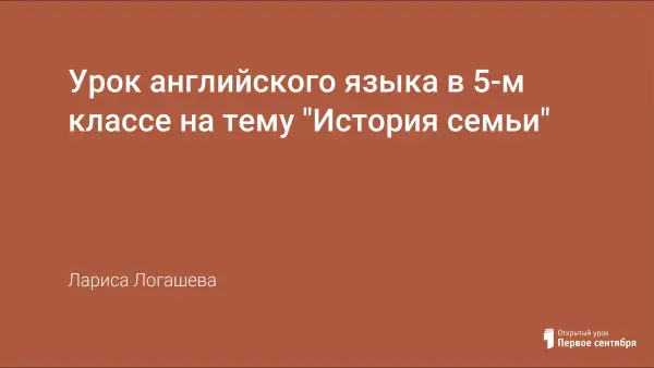 Данный урок является пятым уроком по теме цикла «Моя семья» и двадцать пятым уроком в 5-м классе. Так как цель урока – развитие коммуникативных навыков по теме «История семьи», то ведущим методом, используемым на уроке, стал метод обучения монологической речи «сверху вниз» на основе прослушанного диалога о семье Майка.
