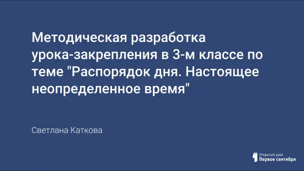 Цели урока: закрепление лексики по теме "Распорядок дня"; закрепление грамматики по теме "Настоящее неопределенное время"; обобщение материала по теме "Распорядок дня"; совершенствование навыков чтения, монологической речи и диалогической речи по теме "Распорядок дня".