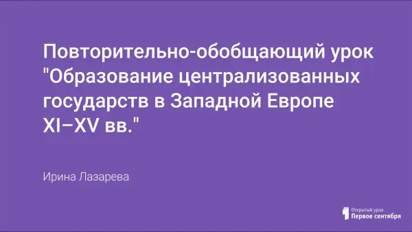 Повторительно-обобщающий урок "Образование централизованных государств в Западной Европе XI–XV вв."
