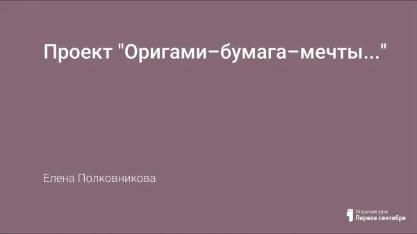 Оригами – целый мир, который можно выразить с помощью души и бумаги. Невероятно, но с помощью этого материала можно создавать самые разнообразные поделки – и плоские, и объемные, и яркие, и моноцветные. Мы обратила внимание, что искусство оригами сочетает в себе красивые формы и удивительно правильные линии. Нам стало интересно, какую роль играет искусство оригами в жизни человека? Цель исследования: познакомиться с историей возникновения и видами оригами, определить значение оригами и области его применения