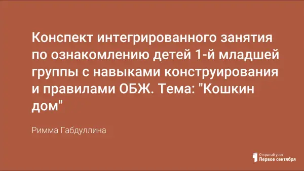 Конспект интегрированного занятия по ознакомлению детей 1-й младшей группы с навыками конструирования и правилами ОБЖ. Тема: "Кошкин дом"