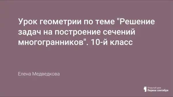 Урок развивает умения анализировать, сравнивать, систематизировать и делать выводы по представленной информации на построение сечений многогранников, даето теоретические и практические основы обучения учащихся построения сечений многогранников, воспитывает культуру общения, познавательную активность, внимательность и интерес к предмету.