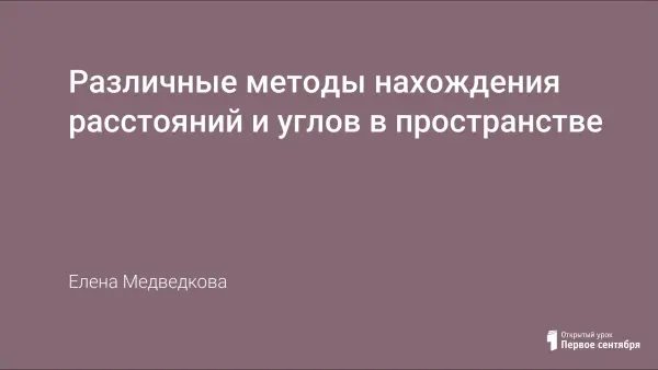 Урок дает представление о методах нахождения расстояний и углов в пространстве, таких, как метод параллельных плоскостей, метод объемов с теоремой о площади ортогональной проекции многоугольника.