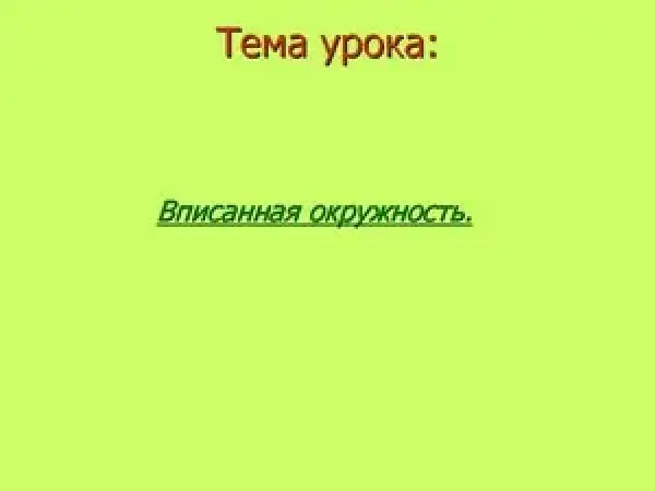 Цели урока: познакомиться с определением вписанной окружности; изучить доказательство теоремы о вписанной окружности; закрепление нового материала в процессе решения задач.