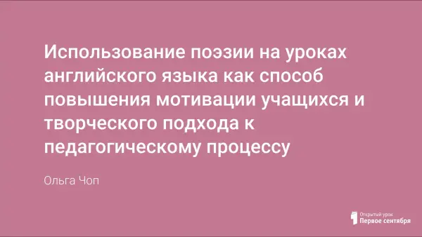 Знакомство со стихотворением необходимо для понятия его содержания, перевода незнакомых слов, формирования представления о смысле стихотворения. Изучение стихотворения ставит своей задачей в первую очередь понять стиль языка, грамматическую структуру письма, понять фигуральный язык – метафоры, эпитеты и т.д. Этапы знакомства и изучения стихотворения формируют некоторую модель или шаблон, применить который на практике – задача этапа сочинения собственного варианта на заданную тему.