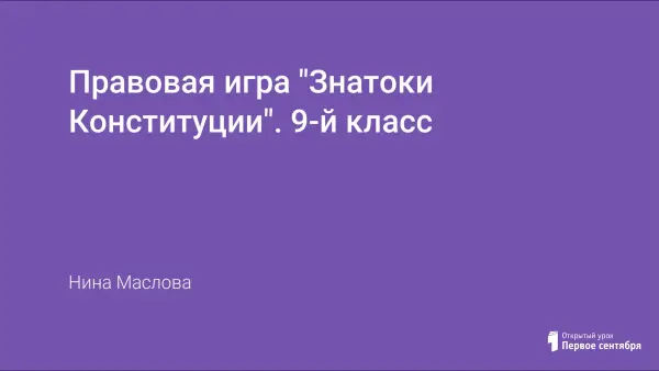 Правовая игра по обществознанию построена по принципу популярной телевизионной игры «Кто хочет стать миллионером».. Цель игры: в занимательной форме расширить знания учащихся по теме «Конституция РФ».