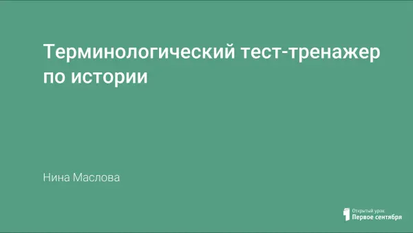 «Терминологический тест-тренажер по истории» предназначен для учащихся 6-го класса общеобразовательной школы. В нем представлены основные термины и понятия курса истории России с древнейших времен до конца XVI века. Может быть использован учащимися при подготовке к урокам, для самостоятельной работы на уроке, а также при проведении итогового повторения по истории России в 6-м классе.