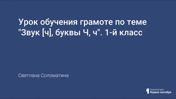 На уроке дети знакомятся с новым согласным звуком, его особенностями и буквой "ч", которая его обозначает; учатся отличать [ч] и букву "ч" от других звуков и букв; учатся читать слоги, слова и предложения с новой буквой. В ходе урока формируются и развиваются умения и навыки фонетического анализа слова, обогащается словарный запас учащихся. Ведётся работа с текстом, ученики учатся озаглавливать и анализировать текст, дополнять его несколькими предложениями.