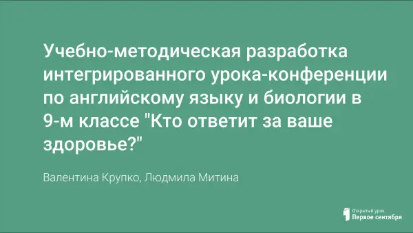 Учебно-методическая разработка интегрированного урока-конференции по английскому языку и биологии в 9-м классе "Кто ответит за ваше здоровье?"
