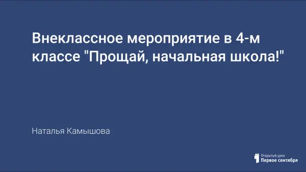 Праздник по окончании курса начальной школы проведен в музыкально-литературной форме. Развивает эстетические чувства, прививается любовь к знаниям, школе, процессу познания мира через учебные занятия. Мероприятие насыщено стихотворениями. Музыкальную, игровую, занимательную части каждый учитель может провести творчески, учитывая мнение самих учащихся.