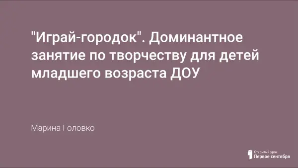 "Играй-городок". Доминантное занятие по творчеству для детей младшего возраста ДОУ