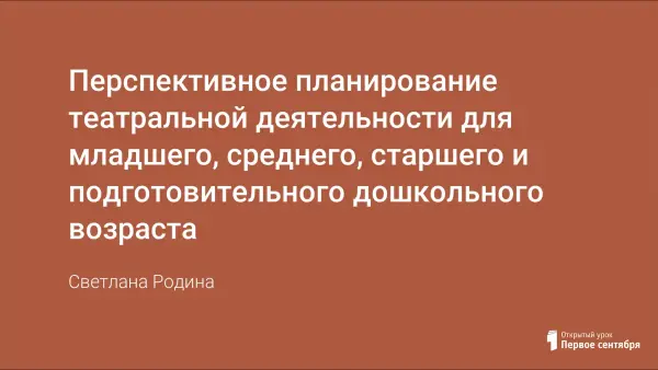 В работе представлено перспективное планирование театральной деятельности для детей дошкольного возраста. Театрализованная игра способствует развитию творческих способностей и познавательной активности детей, нравственному развитию дошкольника, формированию познавательного воображения.