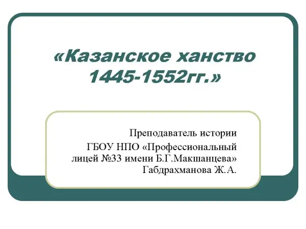 Урок формирует у учащихся знания об основных периодах политической истории Казанского ханства и знакомит с населением ханства.