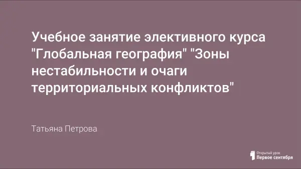 Занятие в 11-м классе служит расширению знаний учащихся по проблеме мира и политической стабильности. В основу построения данного занятия положен метод проблемной беседы. Вопросы, поставленные перед учащимися, касаются таких образовательных областей как география, история, обществознание. Выпускники школы должны уметь рассматривать проблему с учетом знаний, полученных по данным предметам.