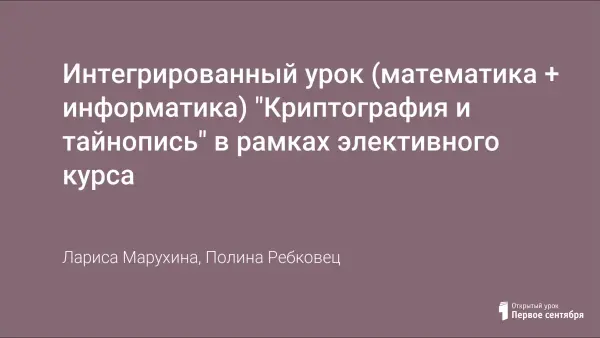Интегрированный урок (математика + информатика) "Криптография и тайнопись" в рамках элективного курса