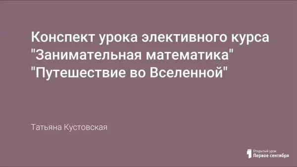 Конспект урока элективного курса "Занимательная математика" "Путешествие во Вселенной"