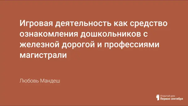 Для ознакомления детей дошкольного возраста с трудовой деятельностью железнодорожников необходимо создать условия, а в частности, наполнить предметно-развивающую среду необходимым обучающим и развивающим материалом, атрибутами к играм. Потребность в игре и желание играть у дошкольников необходимо использовать и направлять в целях решения определенных обучающих задач.