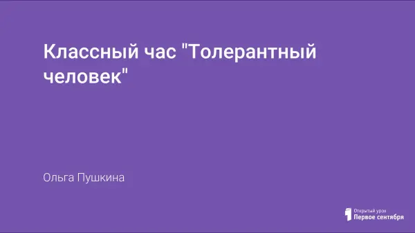 Цель классного часа: познакомить учащихся класса с понятием «толерантность», основными чертами толерантной, интолерантной личности, развивать способность познавать себя и других людей.