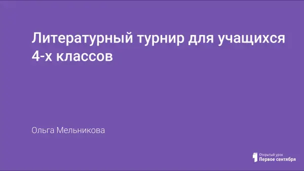 Литературный турнир для учащихся 4-х классов. В течение года проводится 4 тура по 4 книгам. Каждый тур состоит из отборочной и конкурсной игры. В отборочной игре принимают участие все ученики. Из участников, набравших большее количество баллов, формируется команда (5–7 человек) для конкурсной игры по этой же книге среди 4-х классов (задания рассчитаны на два класса). Остальные ребята принимают участие как болельщики. Для них также есть задания.