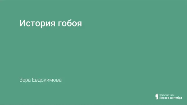 Статья рассказывает об истории духового деревянного инструмента гобой. Вначале изложено краткое описание инструмента, затем идет рассказ о истории гобоя, о его родственниках в Древней Месопотамии, о язычковых семейства гобоя в Древнем Китае, о авлосе в Древней Греции и о родственниках гобоя в Древнем Риме. Также рассказано о семействе инструментов гобойного типа в средние века. Описано возникновение современного гобоя во Франции в XVII в. Разновидности гобоя в XVII в. и гобой д'амур, английский рожок.