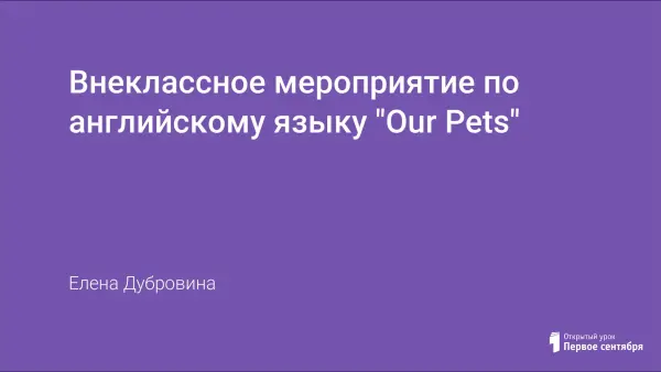 Мероприятие способствует закреплению названий животных в игровой форме. Цель внеклассного мероприятия: развивать произносительные навыки учащихся, развивать интерес к иностранному языку, совершенствовать коммуникативные умения, практиковать монологическую речь, развивать общеучебные навыки.