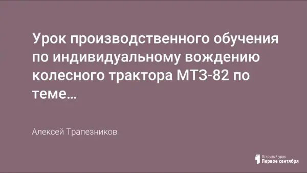 В рамках урока по теме у обучающихся формируется практический опыт пользования органами управления и контрольно-измерительными приборами колесного трактора МТЗ-82, обучающиеся осваивают приемы пуска пускового и основного двигателей. В процессе занятия воспитывается интерес к профессии тракториста, добросовестность, ответственность и культура труда, развивается техническое мышление, самостоятельность, умение использовать в речи профессиональную терминологию.