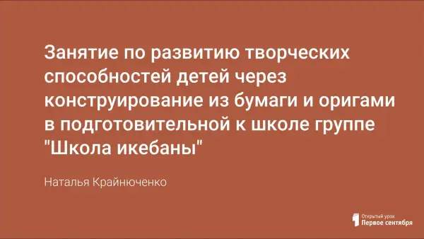 На занятии детям предлагается изготовить икебану, используя технику оригами. Занятие направлено на продолжение знакомства детей с искусством составления букетов; закрепление навыка складывания бумаги техникой оригами (модульное оригами); развитие способностей детей работать руками под контролем сознания и визуальной координации – пооперационные карты; совершенствовать мелкую моторику рук, точные движения пальцев.