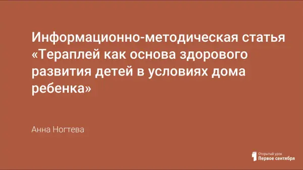 Информационно-методическая статья «Тераплей как основа здорового развития детей в условиях дома ребенка»