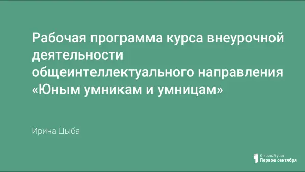 Представлена Рабочая программа курса внеурочной деятельности общеинтеллектуального направления «Юным умникам и умницам».
