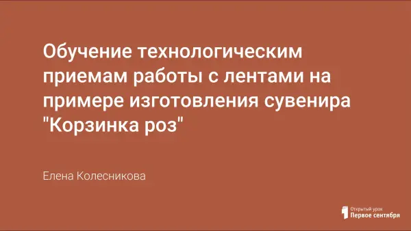 Разработка может использоваться как в кружковой работе, так и на уроках технологии в 5-м классе в разделе "Творческие, проектные работы". Занятие позволяет пятиклассникам освоить азы работы с лентой, чтобы в будущем попробовать себя в вышивке лентами. При этом дети знакомятся с материалами, развивается моторика мелких мышц кистей рук.