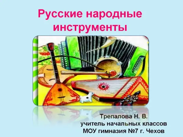 На уроке продолжается знакомство с русскими народными инструментами, историей их возникновения и бытования, тембровой окраской. В презентации учащиеся увидят изображение инструментов России, услышат красоту их звучания. Наши предки владели секретами изготовления народных инструментов и передавали их из поколения в поколение. Содержание урока способствует осознанию значения фольклора в жизни каждого народа, в том числе и русского.