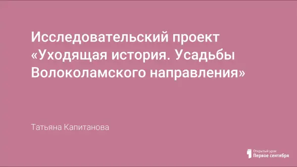 Цели и задачи исследования: узнать прошлое моего края и историю развития русских усадеб; рассказать друзьям о наиболее интересных исторических объектах нашего района; привлечь внимание к сохранению разрушенных памятников и самому принять участие в их реставрации.